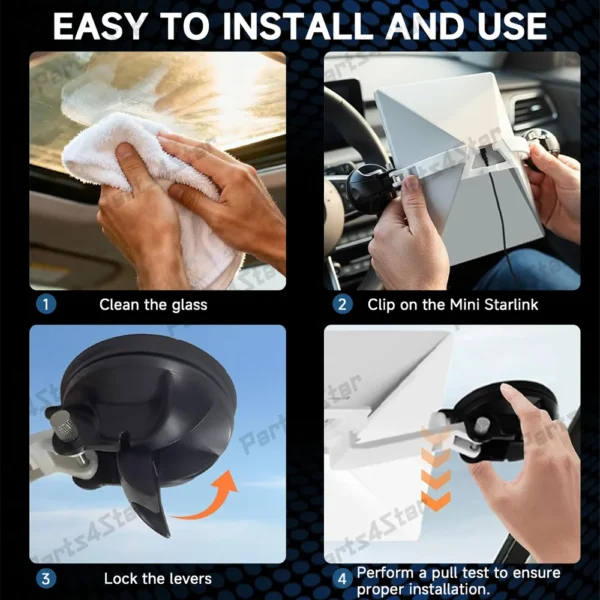 Останете свързани, където и да отидете, с комплекта за монтаж на Starlink Mini за прозореца на кола „всичко в едно“. Създаден за мобилни и автономни потребители, този комплект осигурява силно засмукване, гъвкаво регулиране и здравина, за да държи вашия Starlink Mini сигурно на място – независимо дали сте в града, гората или в движение. Бърз за инсталиране и лесен за употреба, той е идеалният спътник за пътувания с кола и отдалечени настройки.