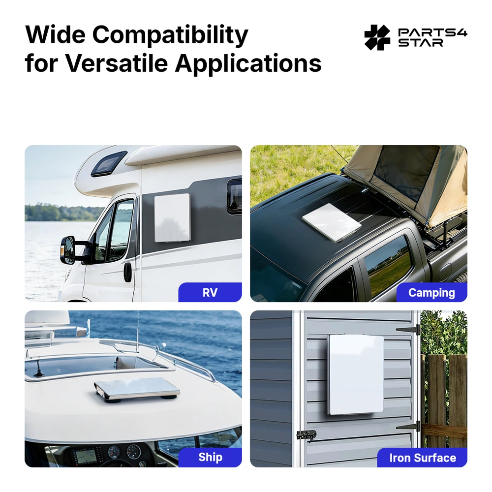- Easy Installation & Multi-Scene Use: Tool-free installation with a high-strength aluminum alloy base, suitable for cars, RVs, trucks, camping, and marine environments.
