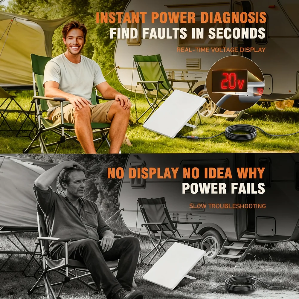 - Real-Time Power Monitoring: Integrated LED screen displays live voltage and current, making it easy to detect weak or unstable power sources.