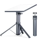 - Montaje universal y fuente de alimentación integrada: La montura de 1/4” y el trípode incorporado permiten acoplar cámaras, luces o proyectores, al tiempo que suministran energía a estos dispositivos en una estación de trabajo móvil.