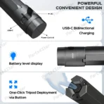- Carga bidireccional USB-C: Carga tus dispositivos o recarga rápidamente la base de carga con el mismo puerto.