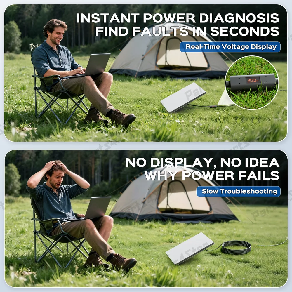 - Visualización de voltaje en tiempo real: Cuenta con una pantalla digital que muestra el voltaje y la corriente en vivo para un monitoreo de energía seguro, preciso y conveniente.