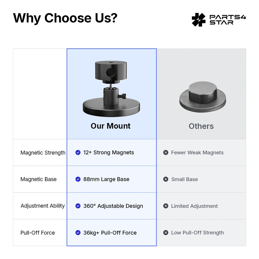 The 2025 New Magnetic Mount for Starlink Mini features 12 strong magnets, 360° adjustability, and tool-free installation for secure, stable performance on the go. Compatible with 2024 & 2025 OEM pipe adapters and built with a paint-safe, all-weather design, it’s perfect for cars, RVs, and any metal surface.