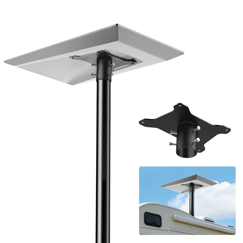 | Acabamento preto elegante | Apresenta um acabamento elegante em preto fosco que complementa a sua antena Starlink. | Aparência profissional que se integra perfeitamente a qualquer configuração de autocaravana ou campismo. |